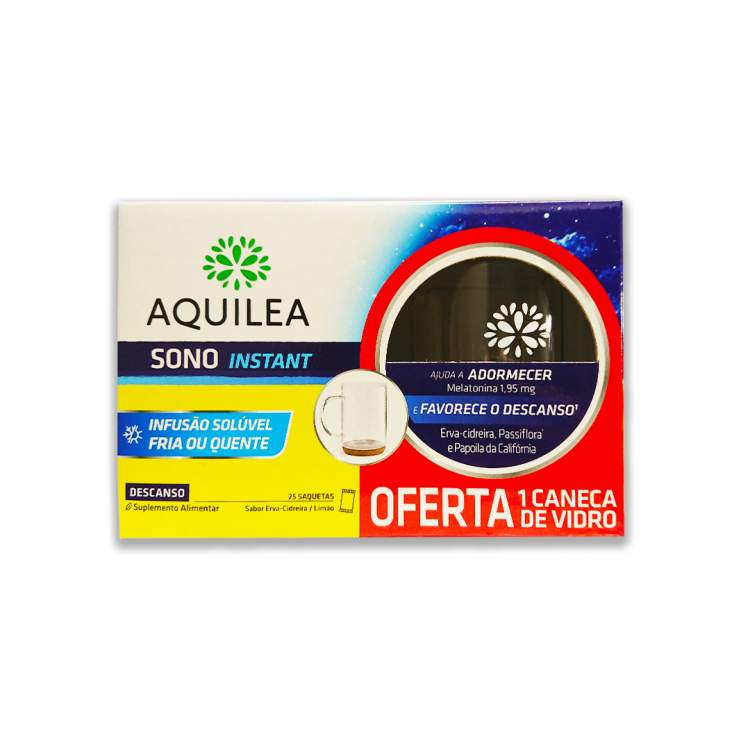 Infusão com 1,95mg de Melatonina e extratos de plantas relaxantes para adormecer mais rapidamente e usufruir de um sono reparador e de qualidade. AQUILEA Sono Instant pode ser tomado diluindo com água fria ou quente. Contém Melatonina, Passiflora, Erva-Cidreira e Papoila da Califórnia. Não contém açúcar nem lactose.