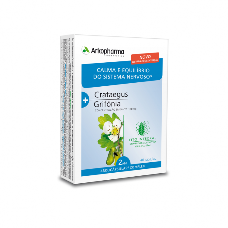 [SONO e STRESS] Arkocápsulas® Complex Sistema Nervoso é um suplemento alimentar à base de Crataegus e Grifónia. O Crataegus contribui para o relaxamento e ajuda a conciliar o sono, enquanto que a Grifónia ajuda no normal funcionamento do sistema nervoso.