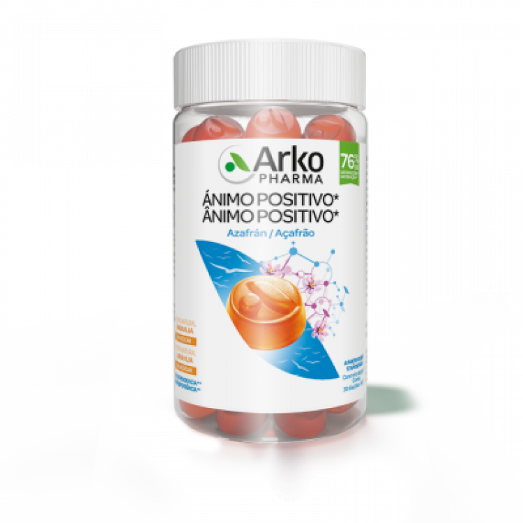 Suplemento alimentar à base de Açafrão que ajuda a recuperar um estado de espírito positivo, reduz a tensão e contribui para o equilíbrio emocional ao promover um bom humor. Contém, por 2 gomas, 30mg de Extrato dos estigmas de Açafrão. Vegan: origem 100% vegetal, sem açúcar, glúten, nem lactose. Sem dependência ou habituação. Apenas a partir dos 12 anos: Tomar 2 gomas por dia.
