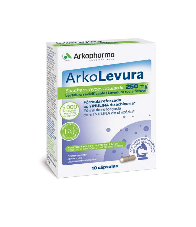 [Digestão] Suplemento alimentar à base de levedura e inulina. A levedura Saccharomyces boulardii é um microrganismo vivo benéfico para o processo digestivo e para o seu equilíbrio. O acondicionamento deste suplemento garante a presença de mais de 2.500 milhões de UFC até ao final do prazo de validade do produto. Posologia: Crianças dos 3 aos 6 anos tomar 1 cápsula por dia (abrir a cápsula e incorporar na alimentação). A partir dos 7 anos 1 a 2 cápsulas por dia durante a refeição.