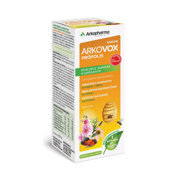 [NARIZ e GARGANTA] Suplemento alimentar à base de plantas, própolis e mel, que deve ser tomado aos primeiros sinais. Os extrato de Malva e Eucalipto ajudam a amaciar a garganta, faringe e cordas vocais, contribuindo para o bem-estar respiratório. A Equinácea vai também ajudar no normal funcionamento do sistema imunitário. Contém xarope de agave- baixo índice glicémico (=13).