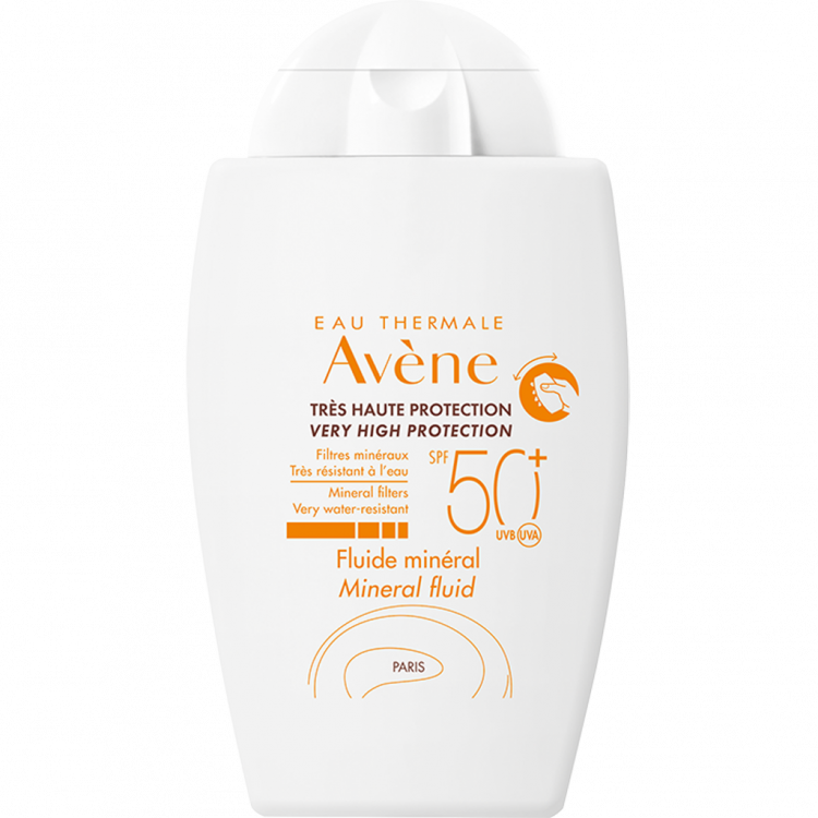 Protetor solar 100% mineral, sem perfume, com proteção solar UVB/UVA muito elevada, indicado para pele intolerante e reativa a filtros químicos e perfumes. Textura leve e fluida hidratante, com acabamento mate, sem deixar película branca. Contém na sua fórmula um complexo 100% mineral estável, a Provitamina E, um poderoso antioxidante que protege as células contra os radicais livres e Água Termal dAvène, com propriedades calmantes e suavizantes para o conforto diário.