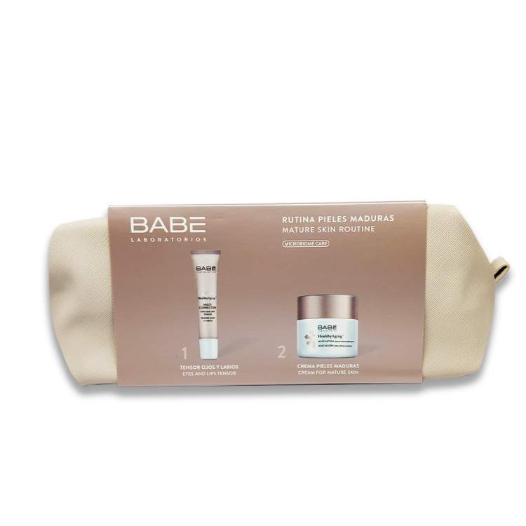 BABÉ HealthyAging+ Creme Multi Ação - Cuidado nutritivo, anti-rugas e reafirmante, que estimula a atividade celular e repara a pele devolvendo-lhe a sua elasticidade. A sua fórmula específica para peles maduras, ajuda a reduzir as rugas, reafirmar a pele e uniformizar o seu tom. A pele fica hidratada, suave, tonificada e protegida contra as agressões externas. Contém: Prebióticos; Vitamina C; Carnosina; Centella Asiatica; Elastina; AHAs; Complexo Nutritivo e Ácido Hialurónico. BABÉ HealthyAging+ Creme Multi Corretor Olhos e Lábios - Multi corretor que ajuda a corrigir as rugas e olheiras. Dá firmeza, elasticidade e suavidade à pele. Previne o aparecimento de mais rugas, atenua as olheiras e reforça a função barreira da pele.