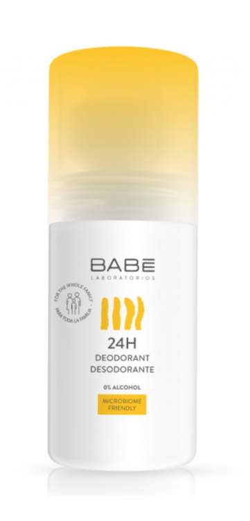 Babé Desodorizante Roll-On 24H é um desodorizante sem álcool com efeito 24 horas que protege, acalma e hidrata a pele. Neutraliza e previne o mau odor corporal durante 24 horas deixando a pele fresca e hidratada. A sua fórmula adaptada, respeita o microbioma natural da pele, permitindo a sua respiração natural.