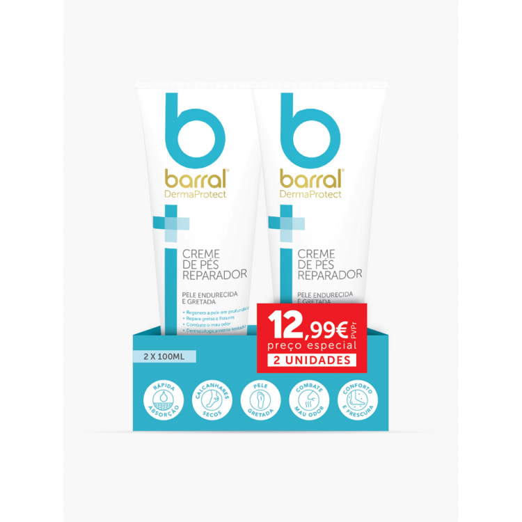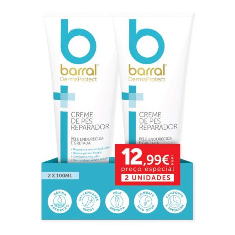 Pack Duo Preço Especial: 2 embalagens de Barral Creme de Pés Reparador de 100ml cada.