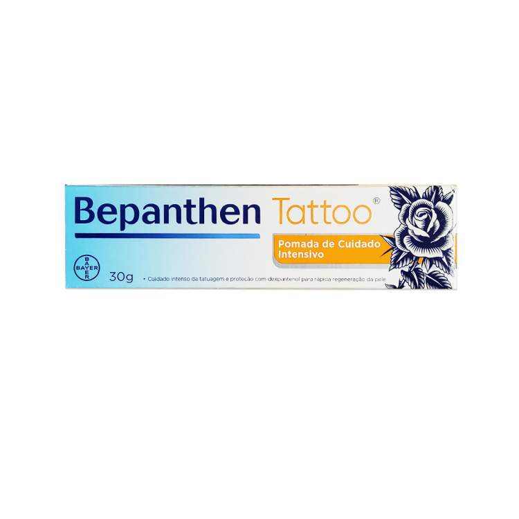 Bepanthen Tattoo é uma pomada de cuidado intensivo, para proteção e rápida regeneração da pele, em especial da pele tatuada. A sua fórmula com dexpantenol cria uma camada protetora natural e respirável que fornece o nível de hidratação necessário para ajudar a pele a regenerar desde o seu interior e para estabilizar a função natural de barreira cutânea. A pomada forma uma camada fina transparente, sem deixar uma película branca espessa, e não precisa de ser limpa. Aplicar uma camada fina, em cada tatuagem, 4 vezes ao dia para assegurar bons resultados.