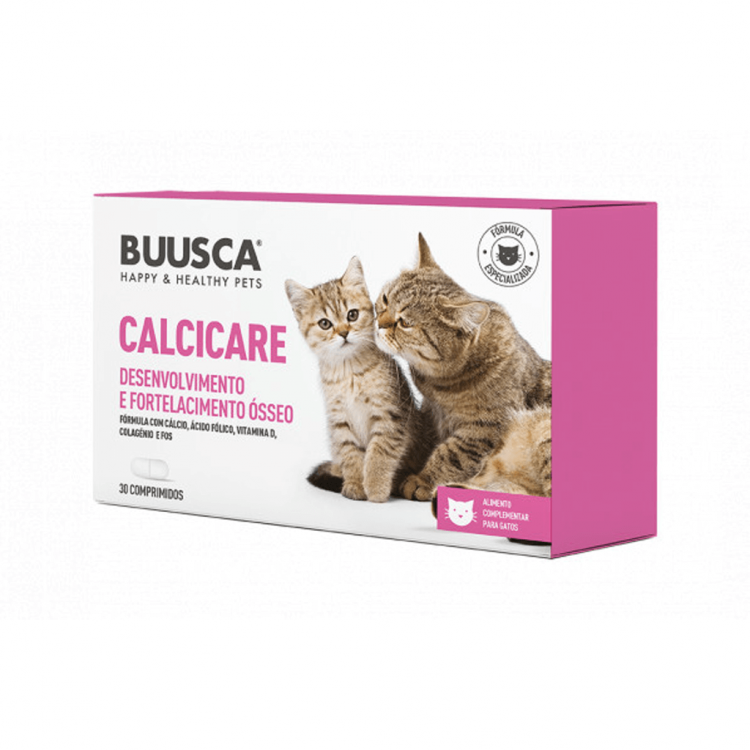 Buusca Calcicare é um alimento composto complementar para gatos, especialmente desenvolvido para o desenvolvimento, fortalecimento e proteção óssea. Buusca Calcicare apresenta uma fórmula completa que conjuga a ação do Cálcio com a Vitamina D, Ácido Fólico e FOS, especialmente desenvolvida para gatos em crescimento e fêmeas no final da gestação e lactação.