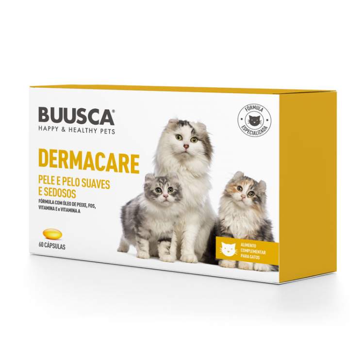 Buusca Dermacare é um alimento composto complementar para gato, especialmente desenvolvido para a pele e pêlo.