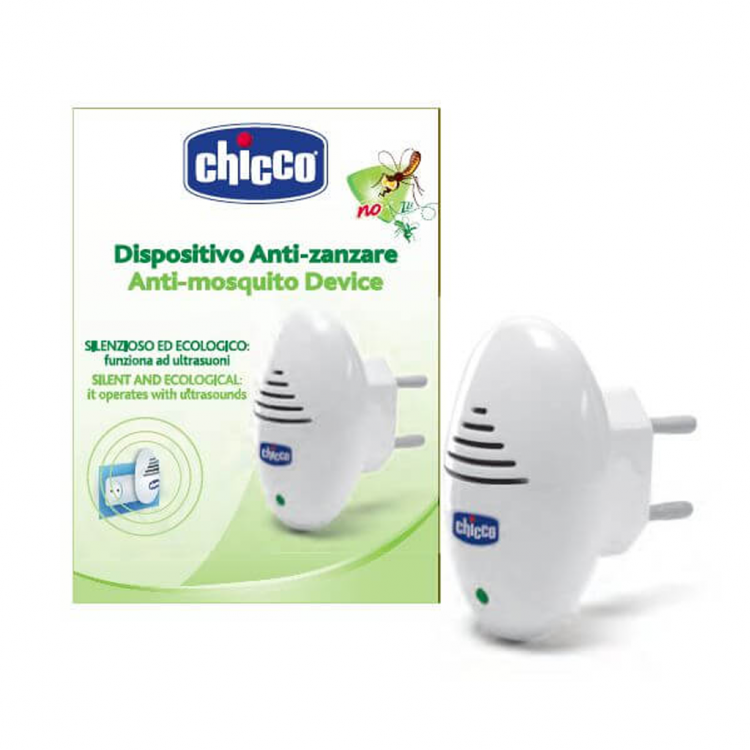 Dispositivo repelente de mosquitos que atua através de ultrassons que incomodam os mosquitos, mas que não causam efeitos indesejados nas pessoas. Produto ecológico, seguro e com consumo de energia reduzido.