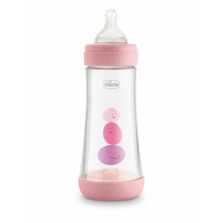 Biberão anticólicas Perfect5 4m+ 300ml fluxo rápido. Adapta-se ao ritmo de sucção individual de cada bebé. O Biberão Perfect 5 é o único biberão revolucionário biofuncional anticólicas com o sistema inovador intui-flow™: a ação combinada da tetina Physio e da Membrana Equilibrium promove a sucção fisiológica e intuitiva e suporta naturalmente o ritmo e a intensidade de sucção de cada bebé, permitindo uma alimentação contínua e sem interrupções ou faltas de ar. A membrana equilibrium permite que o ar entre pela base do biberão, sem se misturar com o leite, por forma a evitar que este entre na barriga do bebé, reduzindo assim a irritabilidade, regurgitação, gases e cólicas. A membrana anticólica é flexível e dinâmica adaptando-se às diferentes intensidades de sucção através dos micromovimentos que regulam a intensidade do leite de acordo com a sucção do bebé, de uma forma imediata e constante. Tetina Physio: • Simétrica, alongada e achatada, simula o seio materno, para promover a ação peristáltica natural da amamentação. • Silicone suave e extra macio, o acabamento especial confere à tetina uma sensação aveludada e macia, semelhante à pele da mãe, para uma sucção ainda mais natural e confortável. • 4 Fluxos diferentes disponíveis (normal, médio, rápido e fluxo papa) para acompanhar o bebé nas diferentes fases de desenvolvimento. A tetina adapta-se na perfeição à boca do bebé, respeitando o movimento natural de sucção. Macia e elástica com acabamento Soft Sense promove uma sensação suave e natural durante toda a alimentação. Uma alimentação calma, tranquila e sem interrupções ajuda a promover o bem-estar físico e psicológico do bebé. Para além disso, ajuda a neutralizar o fenómeno fisiológico das cólicas e reduzir a ingestão de ar durante a alimentação, uma vez que não há criação de vácuo no interior da tetina durante a sucção. A base é removível, permitindo uma lavagem rápida e prática. Biberão em polipropileno, 0%BPA.