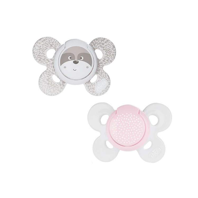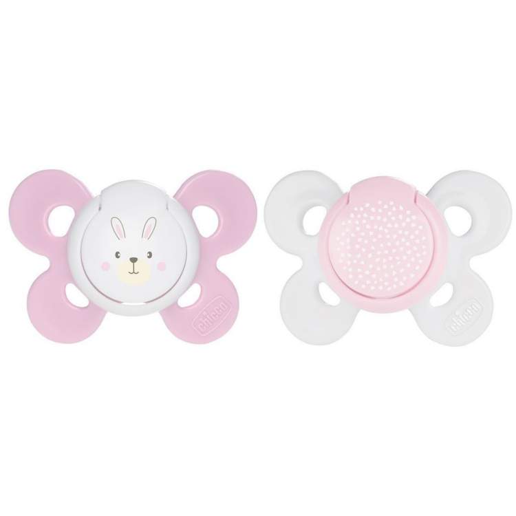 As chupetas PhysioForma Comfort são ergonómicas e confortáveis. Assegura o máximo de espaço para o queixo e nariz, facilitando a respiração e os movimentos de sucção. Com apenas 4 superfícies de contacto garantem a máxima liberdade e suavidade sobre a pele do bebé. Suave e em silicone higiénico, sem sabor ou odor e que não deforma com o tempo, a tetina favorece o correto desenvolvimento da boca do bebé e o posicionamento natural da língua. A área existente na base da tetina é grande e espaçosa, garantindo o espaço suficiente para que os lábios do bebé se possam movimentar naturalmente durante a sucção. Disponível em 3 tamanhos diferentes: 0-6m, 6-16m e 16-36m, para assegurar o tamanho correto da chupeta em cada fase do crescimento. Com anel de segurança. Contém caixa de esterilização que permite higienizar as chupetas Chicco no micro-ondas, matando 99,9% dos germes domésticos nocivos em apenas 3 minutos! Basta seguir os próximos passos: Passo 1: Encha a caixa com água até a linha de nível, coloque as chupetas dentro da caixa e feche a tampa Passo 2: Coloque no micro-ondas por 3 minutos a 750 Watts. Espere até que todas as peças arrefeçam Além disso, permite guardar as chupetas quando não estão a ser utilizadas.