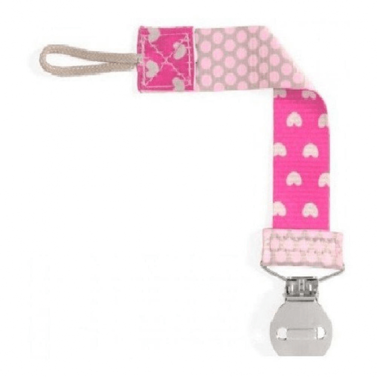 Design 2 em 1 universal, adapta-se a qualquer chupeta, com ou sem anel. Chupetas com anel: Remova o anel do clip e use o fio para fixar o anel da chupeta diretamente ao clip. Chupetas sem anel: O clip contém um anel macio que permite prender o clip ao botão da chupeta. Em tecido, com dois padrões diferentes, na frente e verso.