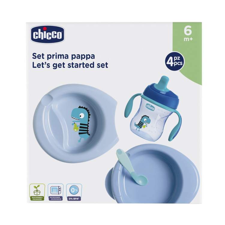 O conjunto contém tudo o que o bebé precisa para a hora da refeição, acompanhando o seu crescimento. Contém: • Copo de aprendizagem, ideal para estimular o desenvolvimento das capacidades do bebé e ajudá-lo a aprender a beber de forma autónoma. O seu formato especial facilita o posicionamento correto dos lábios e promove uma postura adequada do pescoço enquanto bebe. O bico ergonómico é suave e resistente a mordidas. Com válvula anti fuga, e pegas removíveis. • Primeira colher, macia e com ponta flexível • Prato de papa quente e prato simples encaixam perfeitamente para manter a comida do bebé quente durante mais tempo. A sua forma ergonómica torna-o fácil de agarrar, mesmo com apenas uma mão e a base antiderrapante garante que o prato se mantém no lugar. 0% BPA