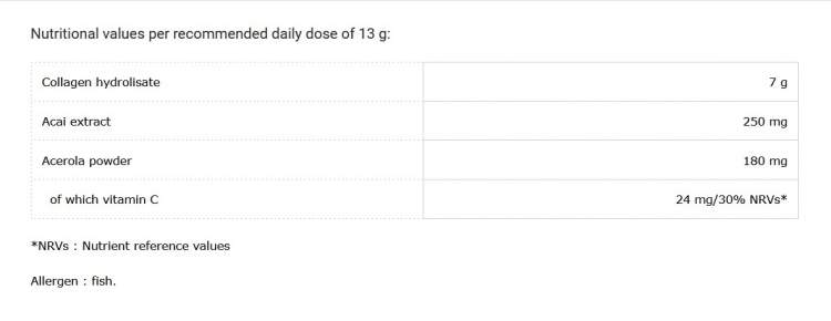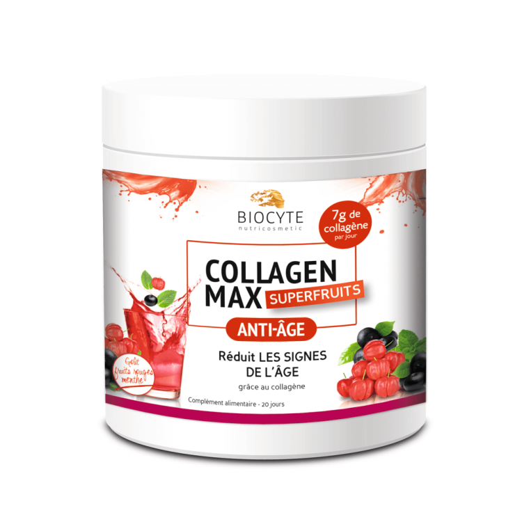 O colagénio é um dos principais "blocos de construção" da pele. Trata-se do maior componente da sua estrutura e assegura a sua densidade e resistência. Com o tempo a produção de colagénio diminui e a pele começa a perder a firmeza e as rugas aparecem. Collagen Max Superfruits combate os sinais de envelhecimento a partir de dentro! Contém uma alta concentração de colagénio hidrolisado, extrato de açaí e acerola.