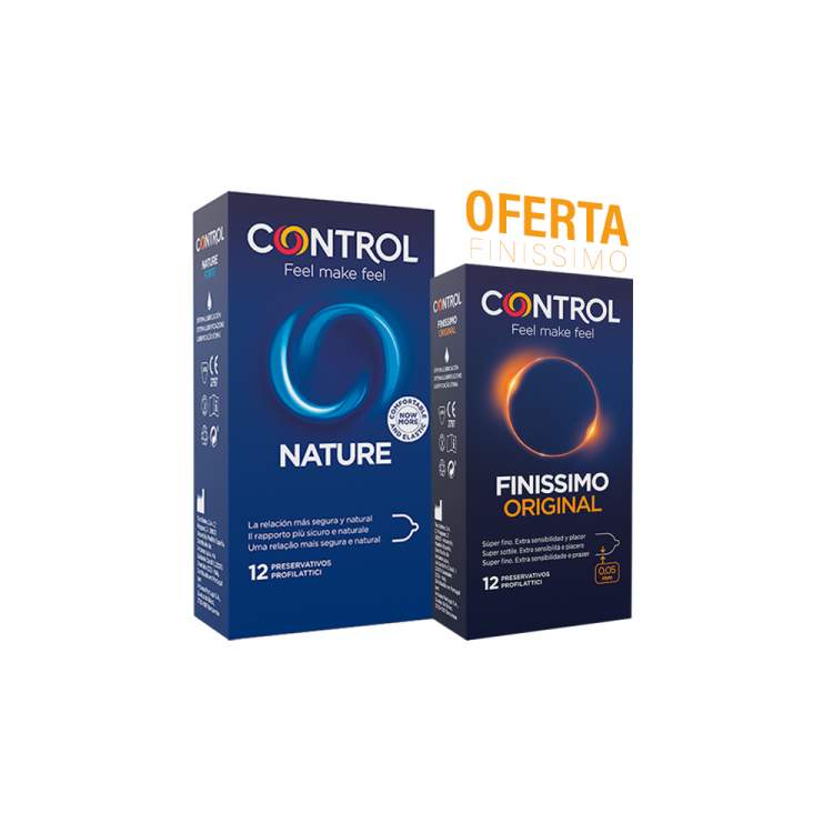 Control Nature - Para quem procura um prazer natural na relação, Nature é o preservativo ideal. A sua forma ergonómica garante uma grande adaptabilidade e um conforto perfeito para uma intimidade ainda mais espontânea. Agora ainda mais elástico e confortável! Control Finissimo - Finissimo é o preservativo extrafino e anatómico que oferece uma adaptabilidade perfeita e maior sensibilidade durante a relação.