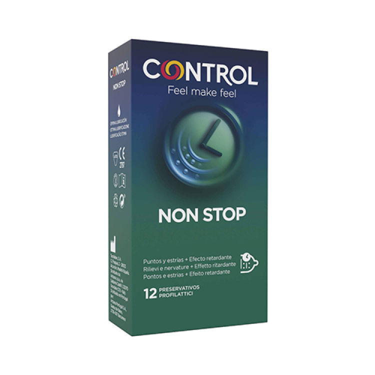 Non Stop Dots & Lines é um preservativo concebido para quem quer algo mais numa relação. Tem pontos e estrias no lado externo para oferecer sensações mais intensas e é lubrificado internamente com benzocaína para favorecer relações mais prolongadas. Preservativos em látex natural com relevos e estrias, transparentes, lubrificação interna com benzocaína e externa à base de silicone. Forma anatómica adapta. Dimensões: Espessura: 0,10mm - Comprimento: 193mm - Largura: 53mm.