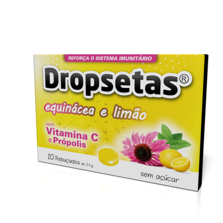 Os rebuçados Dropsetas contêm Vitamina C que contribui para o normal funcionamento do sistema imunitário. Sem açúcar, Sem glúten, Sem conservantes. Disponível em 6 agradáveis sabores: Menta e Eucalipto, Laranja e Mel, Limão e Mel, Frutos Silvestres, Equinácea e Limão, Peitoral - Alteia e Mel. A sua garganta agradece!