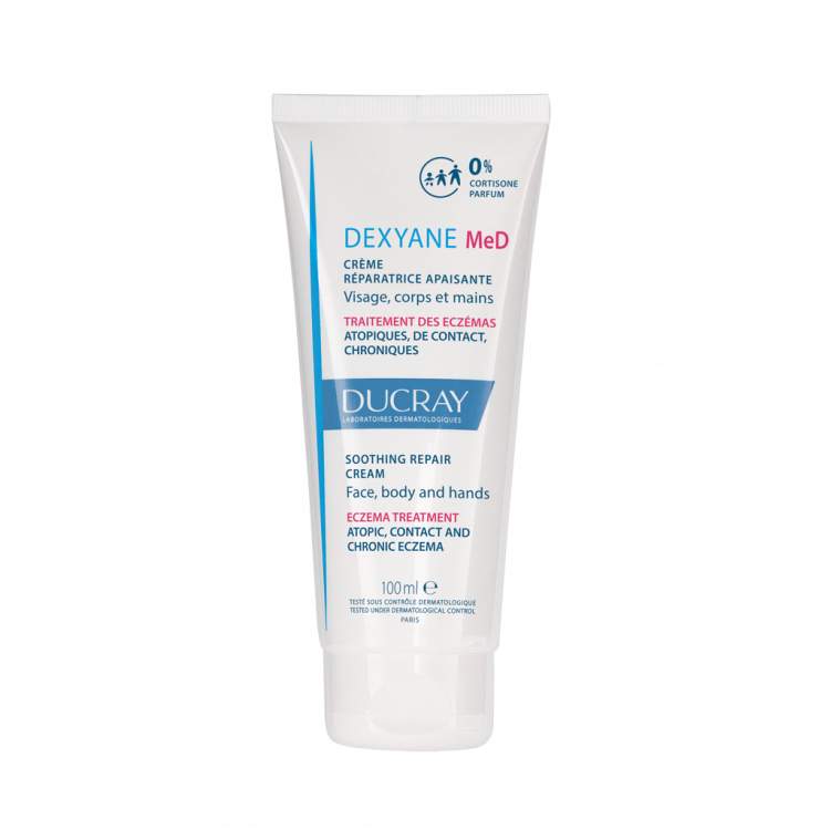 Dexyane MeD creme reparador calmante trata, repara e limita o reaparecimento das lesões de eczemas. A sua textura “efeito penso ultra hidratante” assegura a proteção da pele. Tratamento do eczema atópico, de contacto e crónico das mãos. Isoladamente ou em associação com tratamentos medicamentosos (dermocorticóides, tacrolimus, etc.). Resultados: - Diminuição do prurido e dos sinais de inflamação (vermelhidão e irritações); - Melhoria significativa dos sinais clínicos desde o 3º dia da aplicação de Dexyane MeD em associação com dermocorticóides.