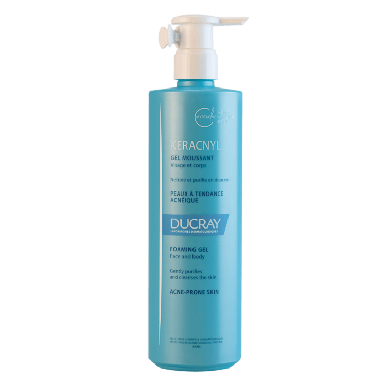 Gel espuma anti-imperfeições para a higiene da pele oleosa ou de tendência acneica, no rosto ou corpo. Purifica a pele em profundidade, preserva a barreira cutânea, limita a proliferação das bactérias e corrige e acalma a pele afetada. Possui ainda um efeito seborregulador e matificante. Pode ser usado isolado ou em associação aos tratamentos medicamentosos, incluindo isotretinoína. Indicado a partir dos 9 anos de idade. Substâncias ativas: Mirtacina e Monolaurina.
