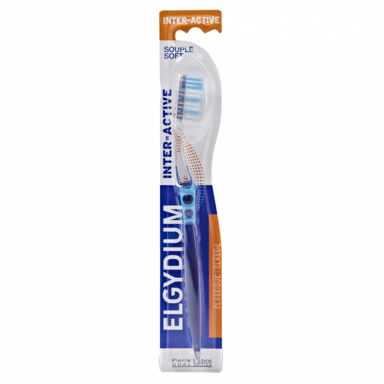 ELGYDIUM INTERACTIVE é o best-seller das escovas Elgydium! As suas cerdas de dois comprimentos diferentes: cerdas curtas para o esmalte e cerdas compridas para os espaços interdentais e massagem das gengivas, asseguram uma escovagem eficaz e suave. Disponível nas referências Suave, Média ou Dura, em 4 cores. Cerdas Tynex® suaves Dois comprimentos de cerdas. Aplicação: Utilizar na escovagem dos dentes, 3 vezes por dia após as refeições, com uma pasta dentífrica formulada para proteger contra a cárie dentária, como a ELGYDIUM Prevenção Cáries.