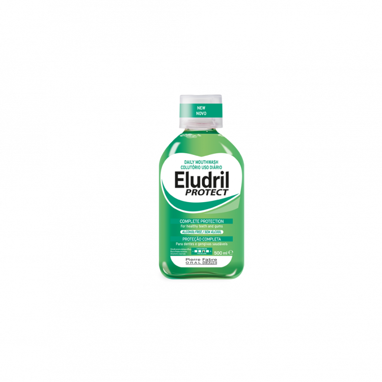 Eludril Protect é um colutório, de uso diário, para uma proteção completa e redução da acumulação de placa bacteriana, para umas gengivas mais saudáveis. Fórmula sem álcool, fortalecedora, com ação complementar à escovagem, particularmente nas zonas onde a escova não consegue chegar: espaços interdentários, áreas cobertas por aparelhos ortodônticos, na língua e no palato. O seu agente purificante ajuda a combater os agentes causadores da placa bacteriana, para uma boca e gengivas limpas. O Fluorinol® (fluoridrato de nicometanol com 225 ppm de iões de flúor, patenteado pelos Laboratórios Pierre Fabre) ajuda a fortalecer e remineralizar os dentes através da ligação à superfície.
