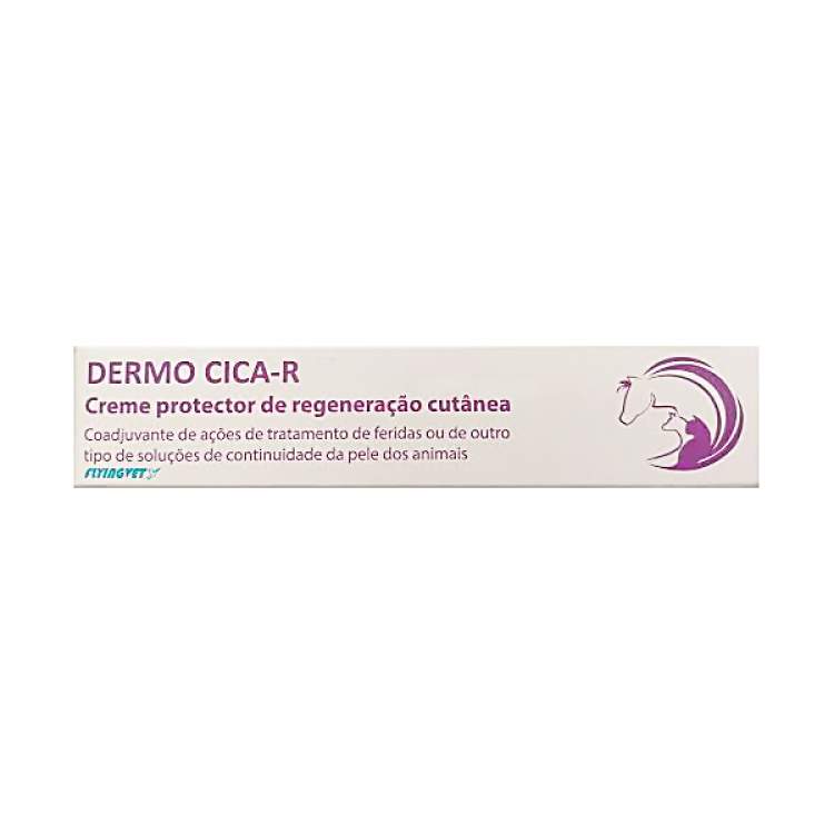 Dermo Cica-R é um creme protetor de regeneração cutânea que fomenta a cicatrização dos tecidos, para tratamento coadjuvante de feridas ou de outro tipo de soluções de continuidade da pele dos animais. A sua fórmula possui uma ação regeneradora, cicatrizante, antibacteriana, protetora e calmante. Contém Óxido de Zinco, Centelha Asiática e Clorhexidina. Apto para cães, gatos e cavalos.
