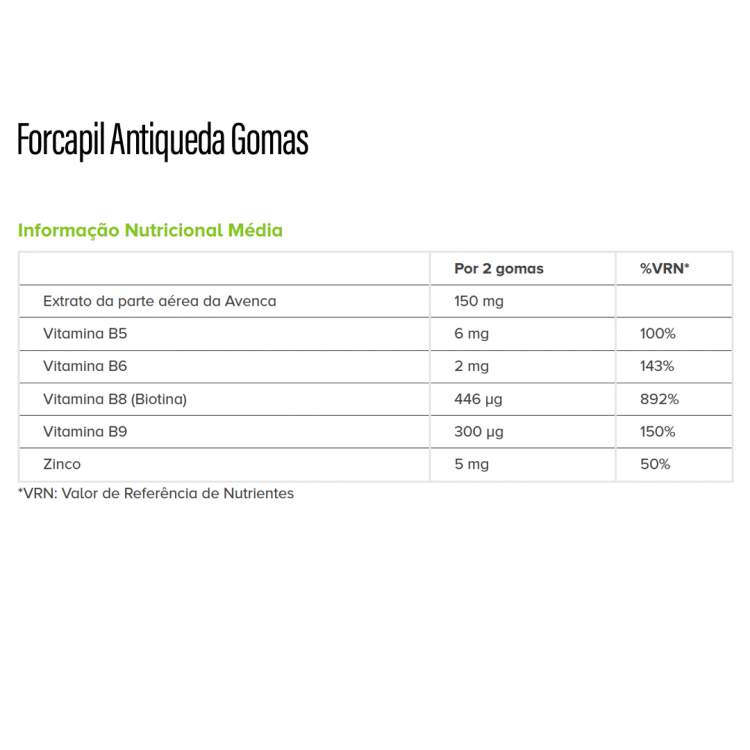 [BELEZA E CABELO] Suplemento alimentar para fortificar e aumentar a resistência da fibra capilar, ao mesmo tempo que previne e diminui a queda. A sua fórmula com Avenca, Biotina e Zinco contribui para a manutenção de um cabelo saudável. Tomar 2 gomas por dia.