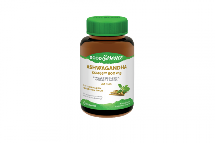 1 comprimido: Ashwagandha KSM66TM 600 mg, Vitamina B1 1,1 mg (100% VRN*), Vitamina B6 1,4 mg (100% VRN*), Ácido Pantoténico 6 mg (100% VRN*), Vitamina B12 2,5 µg (100% VRN*), Zinco 10 mg (100% VRN*). *Valor de Referência do Nutriente.