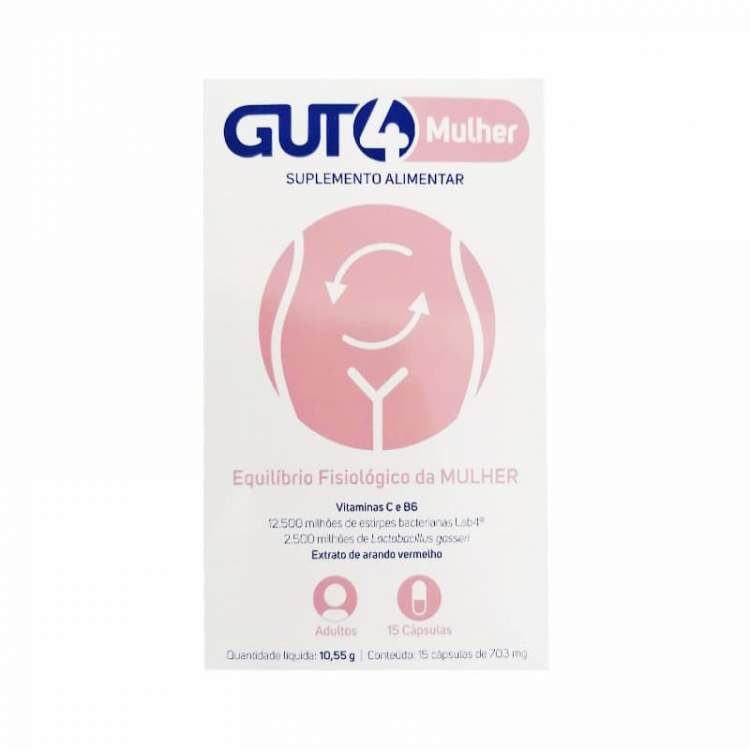 Suplemento alimentar para o equilíbrio fisiológico da mulher com 12 5000 milhões de estirpes bacterianas Lab4, 2 500 milhões de Lactobacillus gasseri, Arando Vermelho, Vitamina C e B6. Contribui para o normal funcionamento do sistema urinário, imunitário, função psicológica e metabolismo produtor de energia.