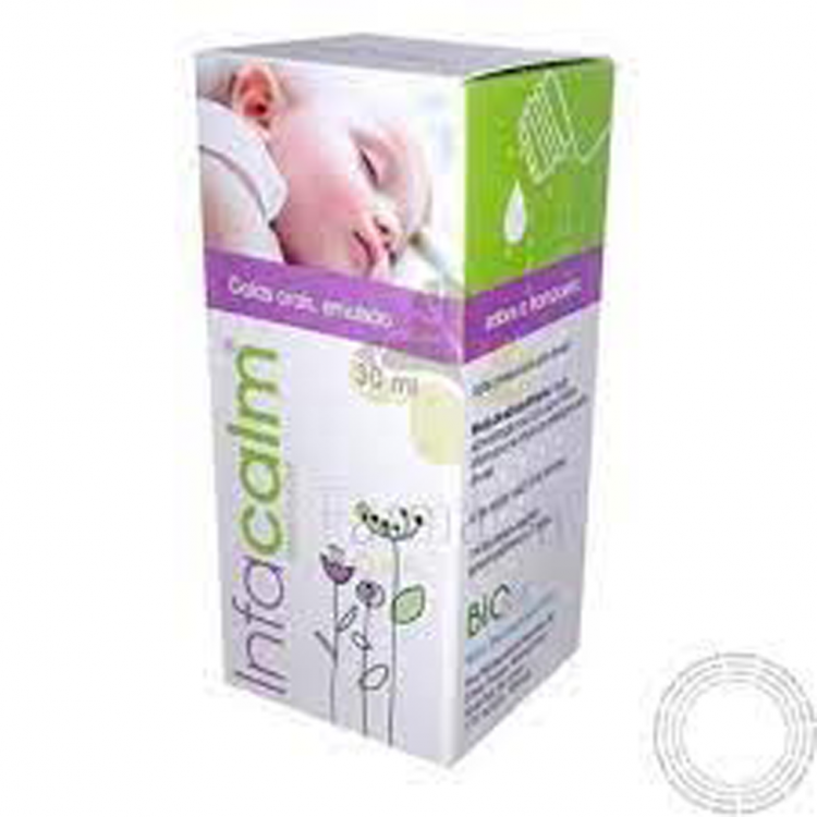 A substância activa de Infacalm é simeticone (dimeticone activado com dióxido de silício). Esta substância actua por redução da tensão superficial, facilitando a remoção de bolhas gasosas presentes no tracto gastrointestinal. Simeticone previne a flatulência dolorosa resultante da entrada de ar durante a refeição ou pela toma de medicamentos que neutralizam o suco gástrico (em especial os que contêm carbonatos). Após administração oral, simeticone não é absorvido no tracto gastrointestinal. Infacalm é indicado: – Para a acumulação excessiva de gases no tracto gastrointestinal (sensação de enfartamento após ingestão de alimentos, flatulência crónica ou flatulência após cirurgia), – Como medida de suporte terapêutico para preparação de pacientes para alguns exames auxiliares de diagnóstico, tais como: Raios-X e ultra-sons (ecografia) dos órgãos abdominais, gastroscopias ou duodenoscopias.