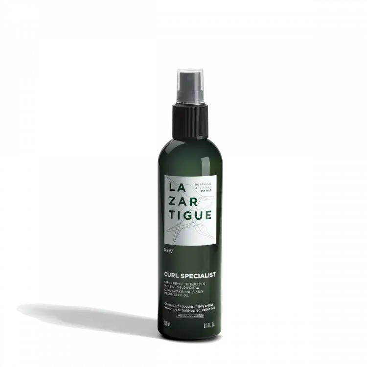 Spray definidor de caracóis, enriquecido com óleo de sementes de melão do deserto de Kalahari, este cuidado redefine instantaneamente os caracóis entre lavagens. Possui ação anti-frizz no cabelo e proteção térmica contra os efeitos nefastos do sol e por aparelhos modeladores. Fórmula vegan, 97% de ingredientes de origem natural, sem silicone nem óleos minerais e não é pegajosa.