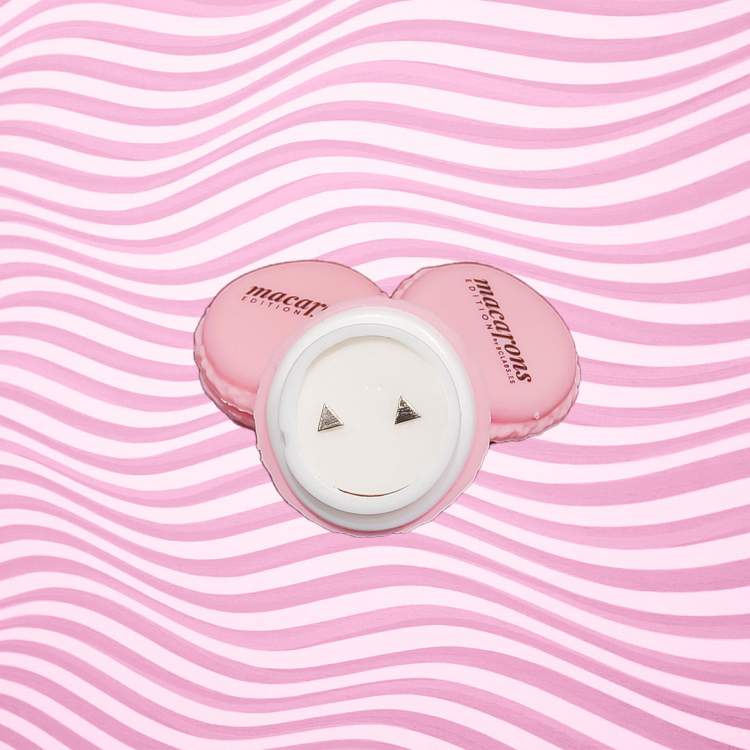Caixa macaron com 1 par de brincos em metal prateado.