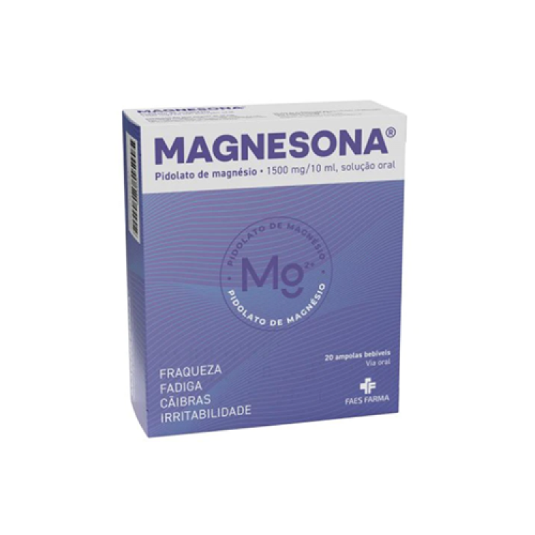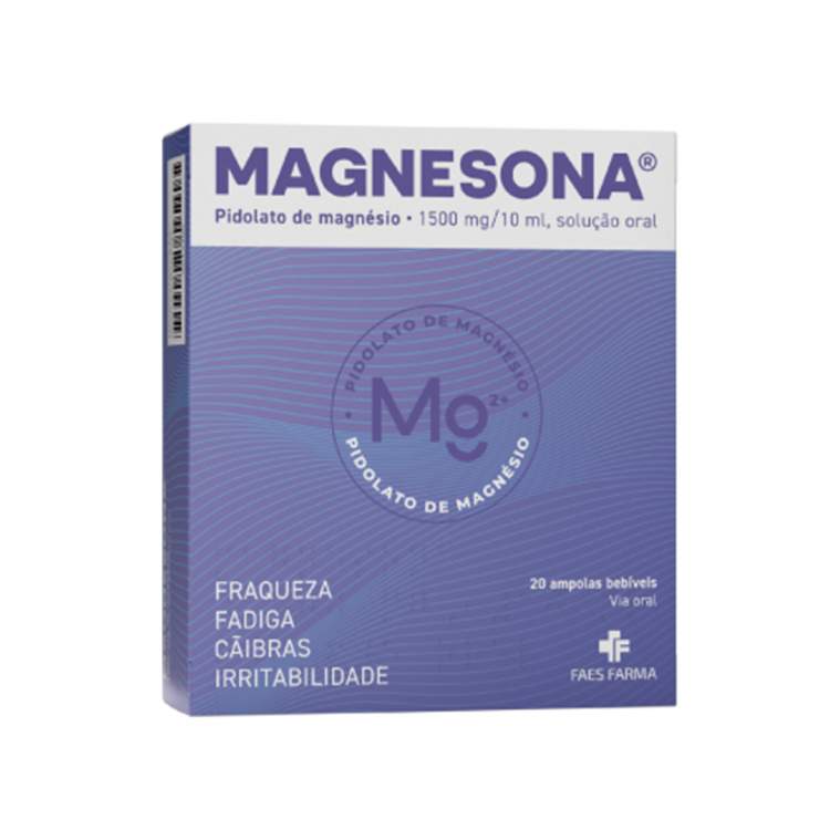 Magnesona contém pidolato de magnésio. O medicamento deve ser tomado para a prevenção e alívio de queixas sugestivas de falta de magnésio, tais como fraqueza, fadiga, irritabilidade, náuseas, cãibras e parestesias (formigueiros). Se não se sentir melhor ou se piorar após 15 dias, tem de consultar um médico. Não deve tomar simultaneamente cálcio e magnésio (Magnesona) para evitar fenómenos de competição ao nível da absorção digestiva. No caso de tratamento simultâneo com cálcio, recomenda-se intervalar as ingestões em pelo menos 3 horas. Magnesona pode também diminuir a absorção das tetraciclinas (antibióticos), bisfosfonatos (utilizados no tratamento da osteoporose), quinolonas (antibióticos), azitromicina (antibiótico) ou preparações de fluoreto de sódio (utilizadas na prevenção de cáries dentárias). Espaçar a administração com Magnesona em 2 a 3 horas.