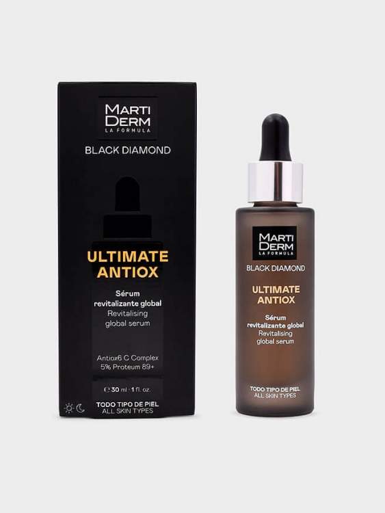 Sérum revitalizante global com potente ação antioxidante. Ilumina a pele, uniformiza o tom e minimiza rugas. É refirmante e hidrata a pele em profundidade. Formulado com Antiox6 C Complex, um complexo de 6 potentes antioxidantes, exclusivo da MartiDerm e Proteum 89+ para favorecer a produção de proteoglicanos endógenos e neutraliza os efeitos sobre o envelhecimento da pele que exercem as radiações UV. Aplique uma pequena quantidade de produto e massageie até à sua total absorção.
