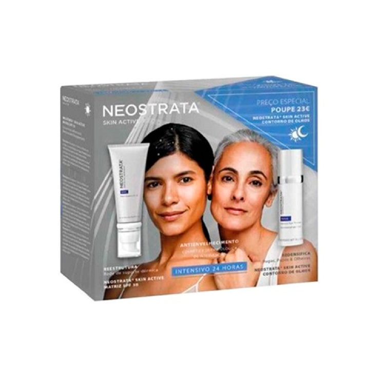 Neostrata Skin Active Matrix Support SPF30 - Creme concentrado reestruturante para o cuidado diário do fotoenvelhecimento de todos os tipos de pele, com SPF30. A sua fórmula contém ingredientes específicos para a remodelação do suporte cutâneo e redução das hiperpigmentações. Neostrata Skin Active Contorno de Olhos - Creme delicado e leve, hidratante, refirmante e regenerador, que corrige todas as imperfeições da pele do contorno dos olhos (rugas e rídulas, olheiras, papos, hiperpigmentações). Todos os tipos de pele.