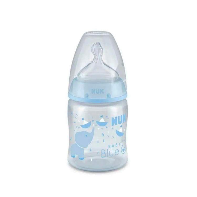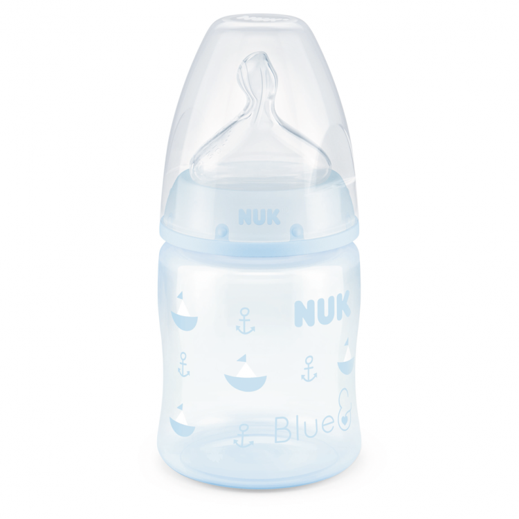 Biberão em poliamida com controlo de temperatura, tetina em silicone e sem BPA. Possui uma tetina flexível e adaptável à boca do bebé, com pequenos orifícios inspirados nos ductos mamários da mama da mãe e que garantem um fluxo de leite suave e natural. A tetina tem uma base de apoio mais larga e flexível permitindo ao bebé controlar o fluxo de leite. A inovadora válvula anti-cólicas torna possível ao bebé beber sem pausas, o que ajuda a prevenir a ingestão de ar. O biberão possui ainda um sistema para verificação da temperatura, se o leite estiver muito quente, o indicador (parece um termómetro) que normalmente está azul, mudará para branco. Idealmente, a comida para bebé deve estar à temperatura corporal (37 ° C = tom azul médio). O controlo de temperatura NUK é uma verificação adicional, verifique sempre a temperatura, colocando algumas gotas no interior do pulso, antes de dar o biberão.