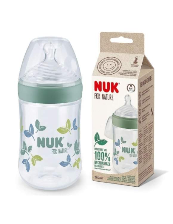 Biberão feito de materiais 100% sustentáveis e a partir de eletricidade verde. Possui uma tetina flexível e adaptável à boca do bebé, com pequenos orifícios inspirados nos ductos mamários da mama da mãe e que garantem um fluxo de leite suave e natural. A tetina tem uma base de apoio mais larga e flexível permitindo ao bebé controlar o fluxo de leite. A inovadora válvula anti-cólicas torna possível ao bebé beber sem pausas, o que ajuda a prevenir a ingestão de ar. O biberão possui ainda um sistema para verificação da temperatura, se o leite estiver muito quente, o indicador (parece um termómetro) que normalmente está azul, mudará para branco. Idealmente, a comida para bebé deve estar à temperatura corporal (37 ° C = tom azul médio).