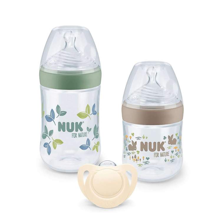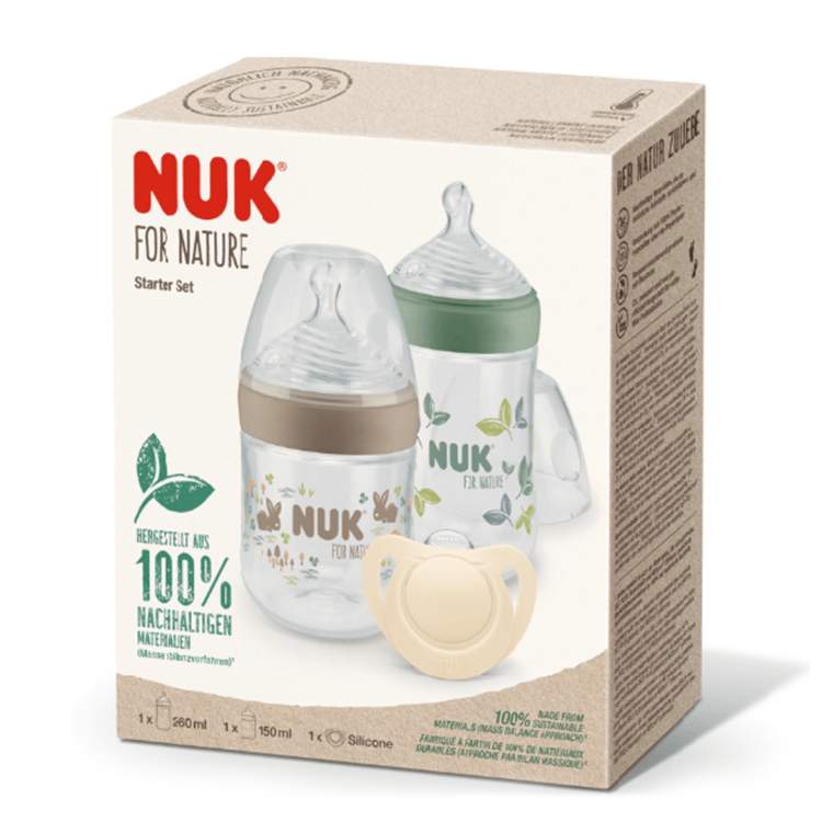 Set inicial ideal para todos os recém-nascidos! Biberões feitos de materiais 100% sustentáveis e a partir de eletricidade verde. Possuem uma tetina flexível e adaptável à boca do bebé, com pequenos orifícios inspirados nos ductos mamários da mama da mãe e que garantem um fluxo de leite suave e natural. A tetina tem uma base de apoio mais larga e flexível permitindo ao bebé controlar o fluxo de leite. A inovadora válvula anti-cólicas torna possível ao bebé beber sem pausas, o que ajuda a prevenir a ingestão de ar. O biberão possui ainda um sistema para verificação da temperatura, se o leite estiver muito quente, o indicador (parece um termómetro) que normalmente está azul, mudará para branco. Idealmente, a comida para bebé deve estar à temperatura corporal (37 ° C = tom azul médio). A chupeta feita de materiais 100% sustentáveis e a partir de eletricidade verde. Inspirada na natureza, é macia, flexível e ajuda a acalmar o seu bebé graças à tetina macia feita de silicone sustentável. A forma da tetina é arredondada em cima e plana por baixo, permitindo um encaixe perfeito na cavidade oral do bebé. Fomenta os movimentos naturais de sucção, reduz a pressão sobre os maxilares e dentes e contribui para um desenvolvimento oral saudável. Por motivos de segurança e higiene, substitua a chupeta de silicone após 1–2 meses de uso.