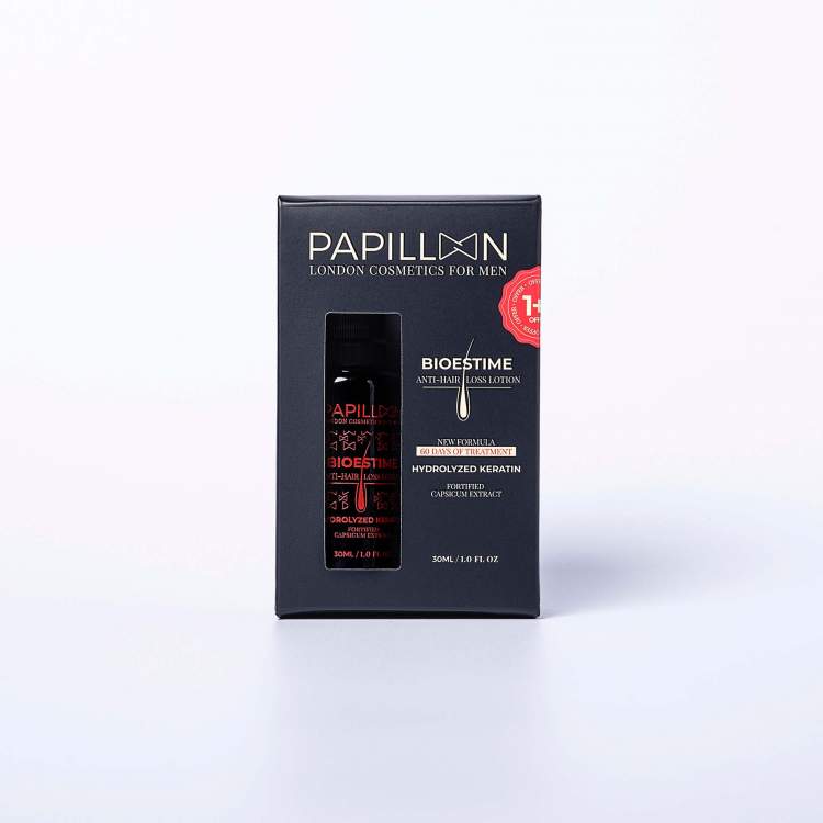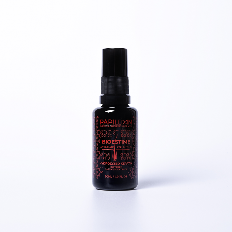 Bioestime Lotion Loção fortificante que estimula o bulbo capilar e prolonga a fase de crescimento do cabelo. Contém agentes vasodilatadores (capsicum) , anti-seborreicos, antifúngicos e queratina hidrolisada, que aumenta a densidade capilar. Indicado também em Alopecia Areata (“Peladas”). Aplicação: Vaporize em pequenas quantidades (oito a dez pulverizações), massajando o couro cabeludo e deixando-o secar. Pode haver um ligeiro rugor local.