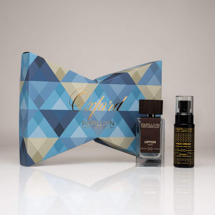 Coffret Papillon Oxford: 1 Perfume Upton de 50ml + 1 Creme Facial Vitamina C de 50ml.