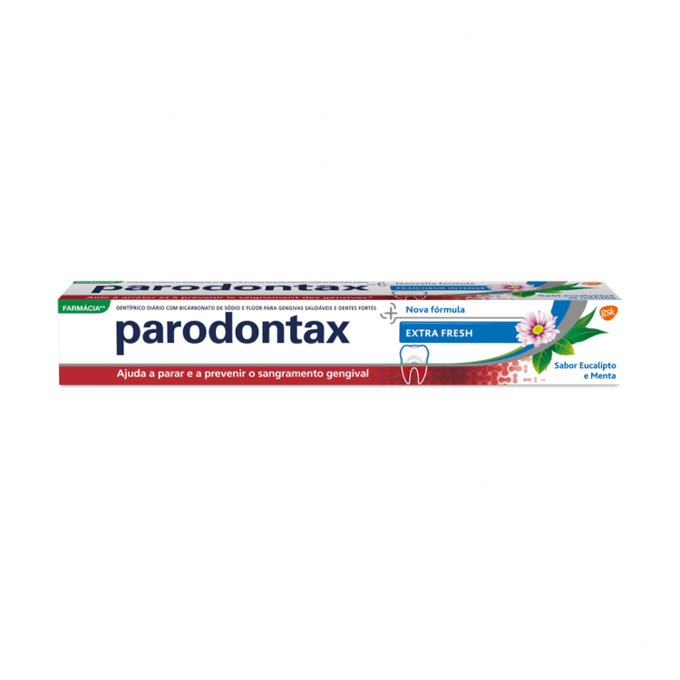 Parodontax Extra Fresh ajuda a parar e prevenir o sangramento das gengivas enquanto mantém a sensação de frescura e limpeza na sua boca durante horas. Parodontax ajuda a manter o selamento entre os dentes e as gengivas e é 4x mais eficaz do que uma pasta de dentes regular no combate à placa bacteriana, a principal causa do sangramento gengival. Quando usada duas vezes ao dia, está clinicamente comprovada que ajuda a parar e prevenir o sangramento das gengivas. As pastas de dentes parodontax contêm flúor para fortalecer os dentes e bicarbonato de sódio para ajudar a remover a placa bacteriana. Poderá demorar a habituar-se ao seu sabor único, mas a maioria das pessoas, ao fim de 14 dias, passa a gostar tanto do sabor como de o uma pasta de dentes regular e valoriza a sensação de limpeza e frescura que lhes proporciona. Utilizadas diariamente, ajudam a manter as gengivas saudáveis, os dentes fortes e o hálito fresco.