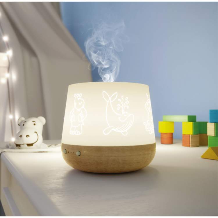 Difusor criado em especial para bebés e crianças uma vez que atua como luz de presença. Decorado com desenhos de animais, a toda a volta, para entreter os mais pequeninos. Possui várias funções de difusão e iluminação. Opções de difusão: Liga e desliga a cada 30 segundos; Ligado durante 1h, 3h ou 7h; Modo contínuo, sempre ligado. Opções de iluminação: Intensa; Suave; Respi Zen, progressiva; Sono, está ligada durante 30 minutos e desliga-se. A luz pode estar a funcionar de forma independente da difusão.