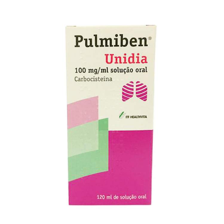 Pulmiben® UniDia é um medicamento mucolítico, que combate a tosse com expetoração, com apenas uma toma diária. Indicado em adultos, adolescentes e crianças com mais de 2 anos. Pulmiben® UniDia, é um medicamento mucolítico, indicado no tratamento de afeções agudas e crónicas das vias respiratórias, caracterizadas por tosse e excesso de produção de secreções. Posologia: Adultos e adolescentes com mais de 12 anos: Tomar 15 ml, 1 vez por dia; Crianças dos 6 aos 12 anos: Tomar 7,5 ml, 1 vez por dia; Crianças dos 2 aos 5 anos: Tomar 5 ml, 1 vez por dia. Contém 100mg/ml de Carbocisteína.