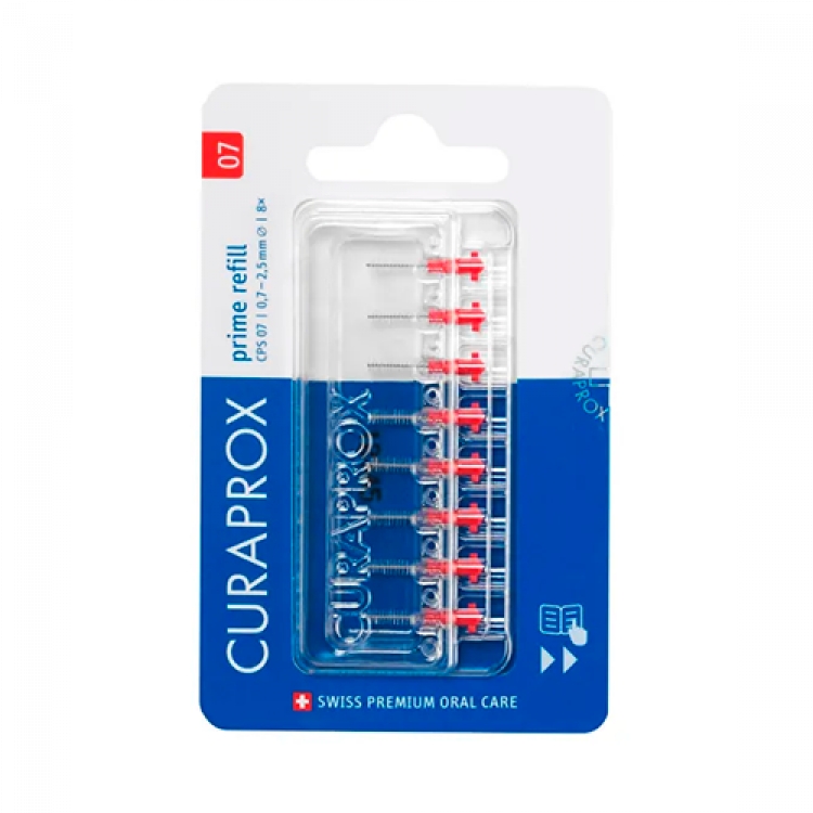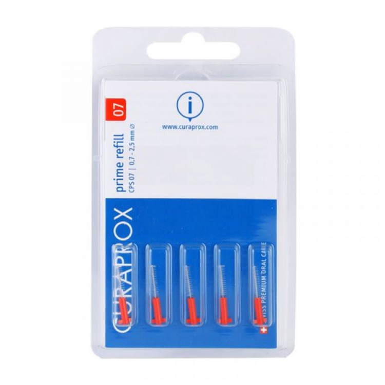 Recarga com 8 escovilhões interdentários CPS 07 prime Provavelmente os escovilhões interdentários mais refinados de sempre. Os escovilhões CPS prime conseguem limpar espaços interdentários muito apertados... ajudando na prevenção da inflamação da gengiva e do mau hálito. Uma utilização diária é tudo o que precisas. Estes são os escovilhões mais finos do mercado com uma durabilidade insuperável. O CPS 07 prime é o segundo escovilhão interdentário mais fino de todos e também cabe em espaços muito estreitos. O sistema de clique significa que os teus suportes favoritos podem ser utilizados - para combater as cáries nos dentes laterais, a gengivite e a periodontite de forma particularmente fácil e eficaz. A qualidade do CPS prime faz com que um único movimento de limpeza seja suficiente: insere. Retira. Está feito. Filamentos ultrafinos com efeito guarda-chuva. Fio cirúrgico patenteado para os espaços interdentários mais pequenos. Longa vida útil. Sistema de clique para todos os suportes. Recarga com 5 escovilhões interdentários CPS 07 prime.