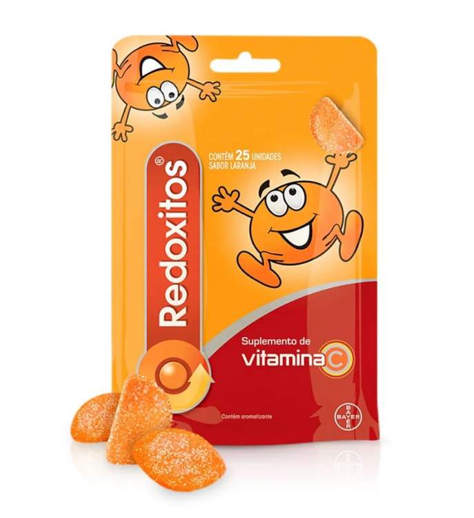 As gominhas de Redoxitos® contam com Vitamina C que ajuda a reforçar as defesas do corpo e dar o suporte diário para o funcionamento normal do sistema imunológico da criança. A vitamina C possui qualidades antioxidantes e promove o funcionamento saudável das células, além de ajudar no desenvolvimento ósseo. Composição: 30mg Vitamina C por goma (100% do valor diário de referência para crianças entre os 4 e os 6 anos).
