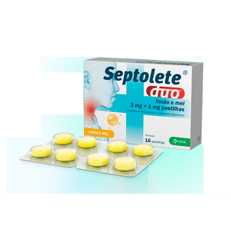Septolete Duo é um medicamento anti-inflamatório, analgésico e antisséptico que desinfeta a boa e a garganta e reduz a inflamação e a dor de garganta. Medicamento utilizado no tratamento de sintomas de infeções ligeiras na boca e garganta, incluindo gengivite e faringite. Septolete contém 3mg de Cloridrato de benzidamina e 1mg de Cloreto de Cetilpiridínio.