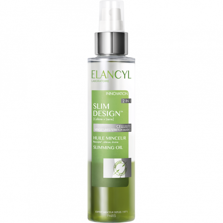 [CELULITE - ESTRIAS - ADELGAÇANTE] O Slim Design Óleo é um cuidado bifásico que proporciona rapidamente uma silhueta redesenhada e uma pele lisa. Possui um efeito adelgaçante, diminuindo visivelmente o aspecto "casca de laranja", estrias e flacidez. Desarmazena e facilita a eliminação de lípidos de forma mais eficaz atavés da sua formulação patenteada à base de cafeína, hera e óleo de camelina.