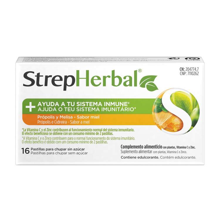 Suplemento alimentar em pastilhas para chupar, que contribui para o normal funcionamento do sistema imunitário. Ajuda ainda a acalmar a garganta irritada. Contém (por 2 pastilhas) 80mg de Vitamina C, 2,3mg de Zinco, 12mg de Extrato de Própolis, 5mg de Óleo de Erva-Cidreira e 0,76mg de Curcumina. Chupar 2 pastilhas por dia para obter o efeito benéfico.