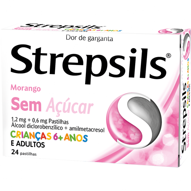 Stepsils Pastilhas com sabor a morango está indicado no tratamento da inflamação da boca, infeções de garganta e dor de garganta. Cada pastilha contém a associação de dois importantes antissépticos (Álcool diclorobenzílico 1,2 mg e Amilmetacresol 0,6 mg) que ajudam a combater infeções bacterianas e virais que causam dores de garganta e infeções na boca, estando clinicamente comprovado que atuam na dor de garganta, mesmo após a pastilha acabar. Strepsils Morango sem Açúcar pode ser utilizado se sofre de diabetes, ou se prefere simplesmente uma pastilha sem açúcar.