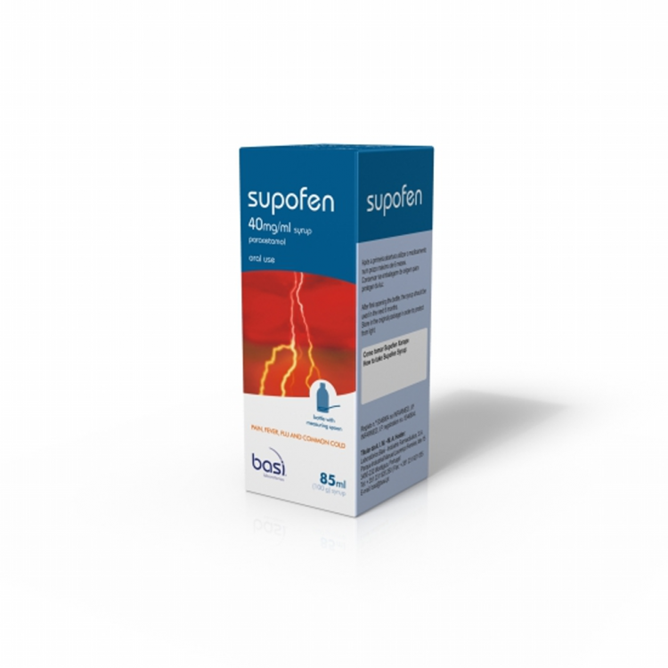 Supofen está indicado no tratamento da dor e febre devido às suas propriedades analgésicas e antipiréticas. Este xarope contém 40mg/ml de Paracetamol.